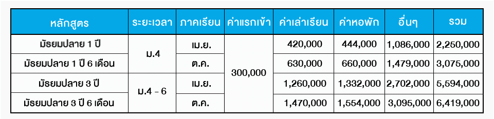 *มัธยมปลาย 1 ปี 6 เดือน และ 3 ปี 6 เดือน