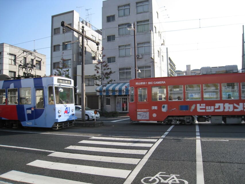 สถานี Okayama โรงเรียนตั้งอยู่หน้าจุดจอดรถราง Higashi Chuo-machi |