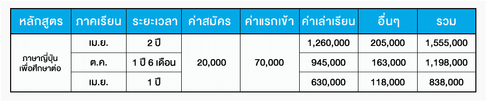 *ครั้งแรกชำระค่าแรกเข้า ค่าเล่าเรียน 6 เดือน และค่าอื่นๆ รวม 391,000 เยน