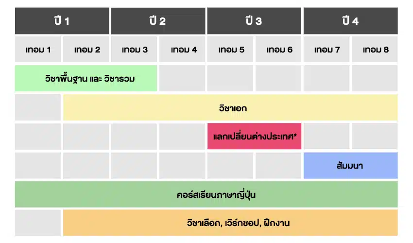 ในปีแรก นักเรียนจะต้องเรียนวิชาพื้นฐานและวิชารวมเป็นหลัก และสามารถเลือกวิชาเอกของตนเองได้ตั้งแต่เทอม 2 เป็นต้นไป
